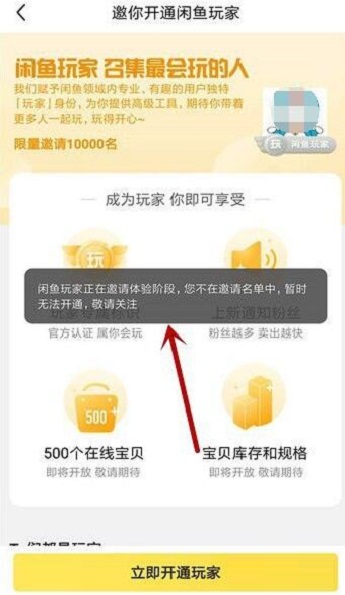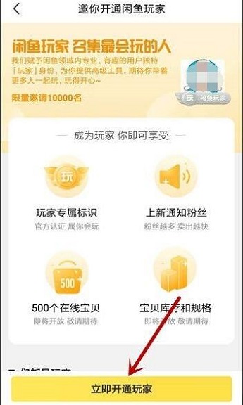 After entering the Xianyu player, you can see that currently only 10,000 people can experience the functions of the Xianyu player. Click [Activate Player Now] below.