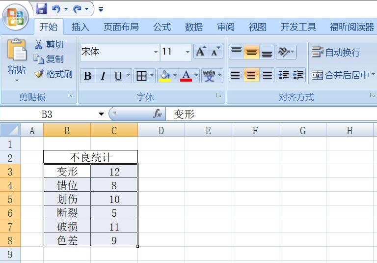First, open an office 2007 Excel document, as shown in the figure, enter the relevant numbers and create a table;