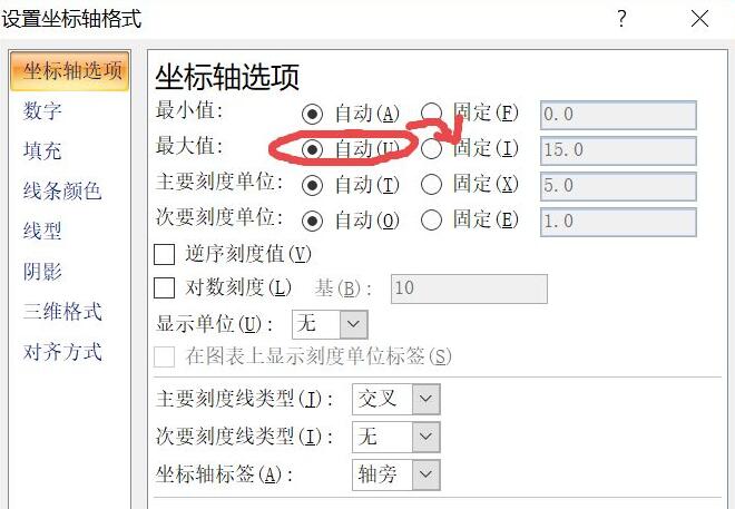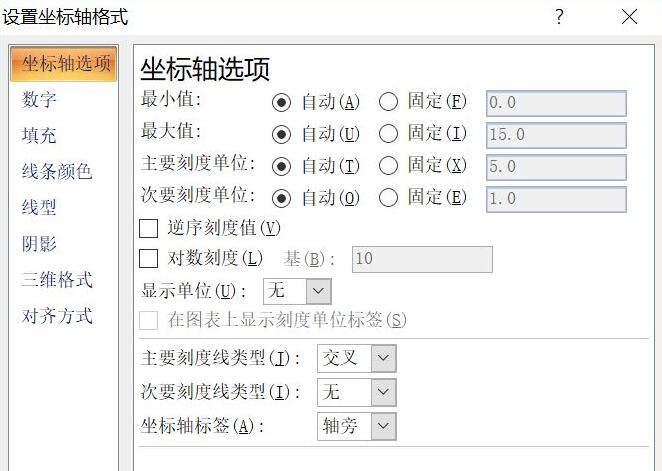 Right-click and select Delete; because our maximum value is 12, and the system’s automatic value is 15, when we add data labels later, the font and data labels will be superimposed, affecting viewing, so here we change the maximum value of the axis to a larger value.