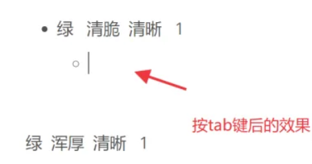 Step 4: After pressing the enter key, you will find that the system automatically generates the second item in the list. At this time, press the Tab key, and the second item in the list becomes a sublist of the first item.