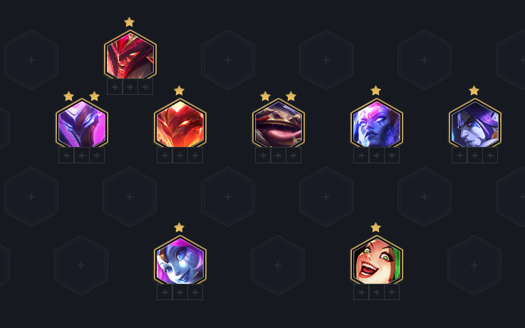 Use Astral Dragon to buy 2-star or 3-star Scorpion and Tentacle Mother, add fighting cards, and put Olaf in the front row to gain passive.