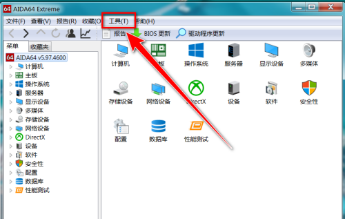 Step 2: In the AIDA64 software, click the "Tools" button on the menu bar.
