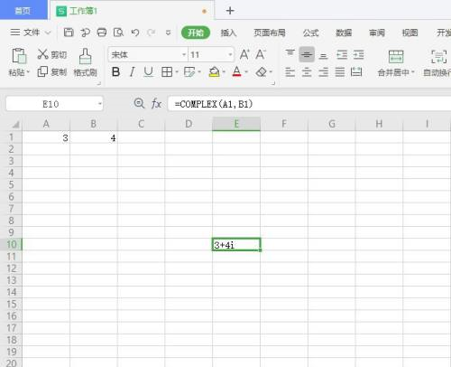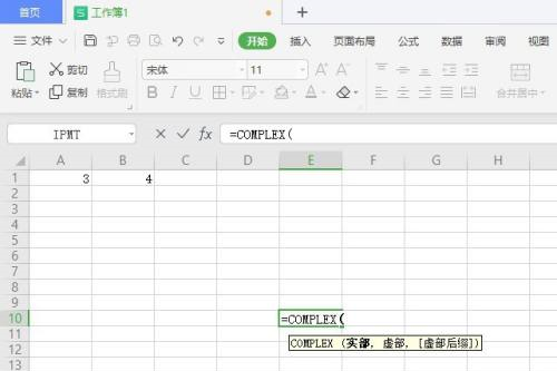 Step 7: The return value is "3+4i", which means that the corresponding real and imaginary parts in cells A1 and B1 are converted into complex numbers "3+4i".