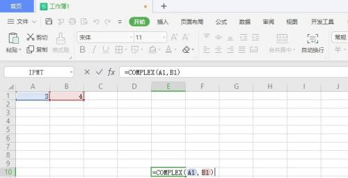 Step 6: In cell E10, enter "=COMPLEX(A1,B1)", which means converting the corresponding real and imaginary parts in cells A1 and B1 into a complex number.
