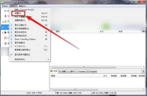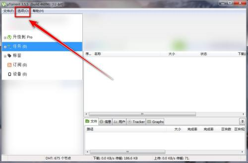 Step 1: In the uTorrent window, click "Options" on the menu bar.