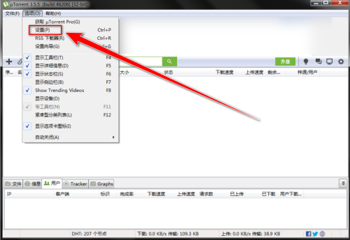 Step 1: In uTorrent, click "Options" on the menu bar.