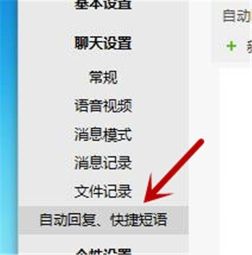 Step 5: Click on the chat settings in the settings, automatic replies, shortcut phrases, as shown in the figure: