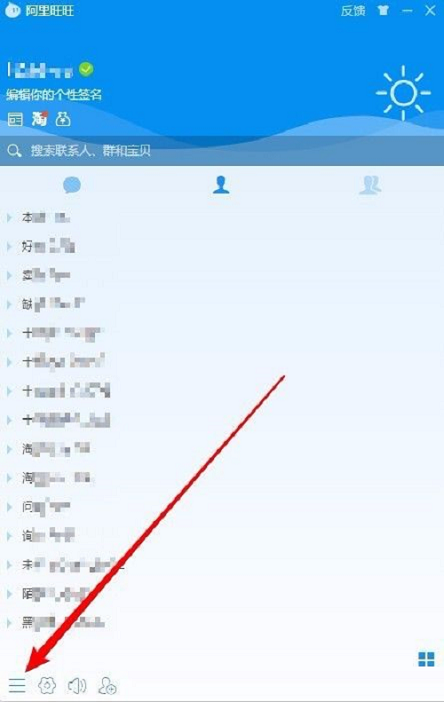 Step 1: Open the AliWangWang software, enter the main interface, and click the "Main Menu" button in the lower left corner.