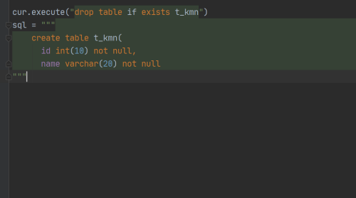 Step 4: Call the execute method to execute the create table t_kmn statement. First delete the table and then create it.