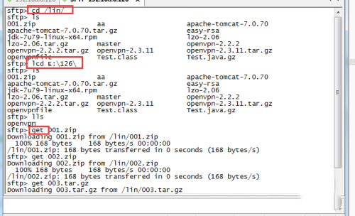 Get: Download files in the remote directory to the local directory