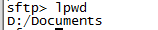 lpwd: Query the local directory (generally refers to the directory where windows upload files: we can check the "Session Options" in the "Options" drop-down box, we know that the local upload directory is: D:/My Documents)