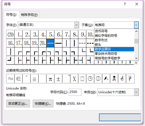 Step 3: In the "Symbol" settings, select "Normal Text" for the font, and select "Mathematical Operators" for the "Subset".
