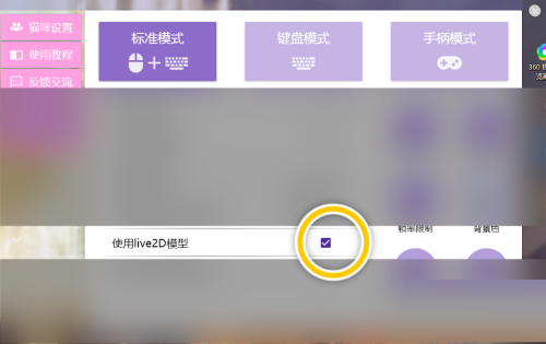 Step 2: In the "Bongo Cat > Standard Mode" interface, check the check switch of the "Use live2D model" option.