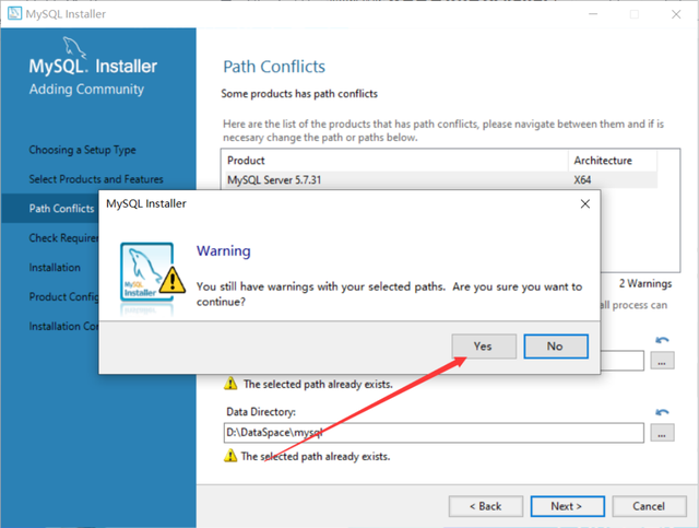 Note: Because I selected the path I created myself, the program prompts me that the path already exists. Do I want to continue?