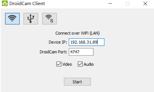 Step 2: Fill in the Wifi IP in the mobile phone interface into the box behind the Device IP on the computer, and thenClickStart connection is ready to use.