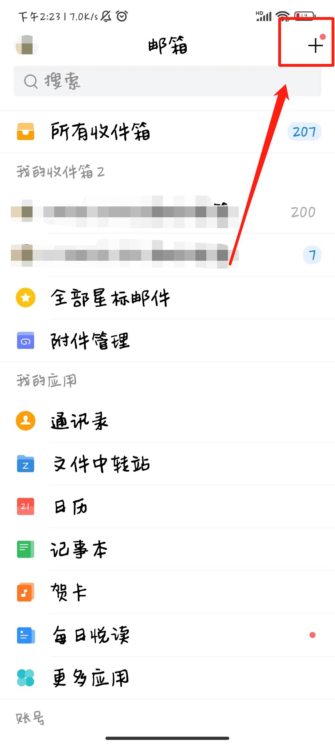 1. Open QQ mailbox and log in with your own mailbox number, click [+] as shown in the picture.