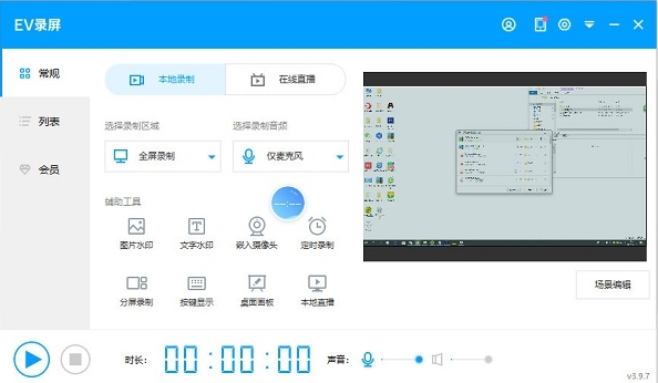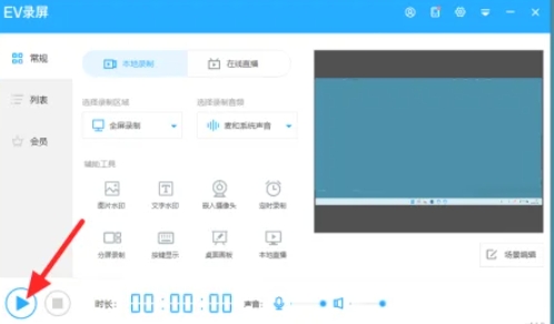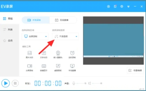 Open the EV screen recording software and enter the screen recording page.