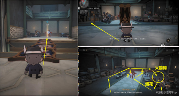 6. You can follow the following route map, first use fireworks to blow up monster 1, then destroy monsters 2 and 3, then wait for monster 4 to come to the middle and then kill monster 4 when it is far away from the surrounding billboard employees to prevent accidental injury to billboard employees.