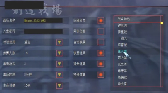After entering the game, select [Regional Network] and click [Create Battlefield]. After setting the scene and various parameters, select the character and weapons.