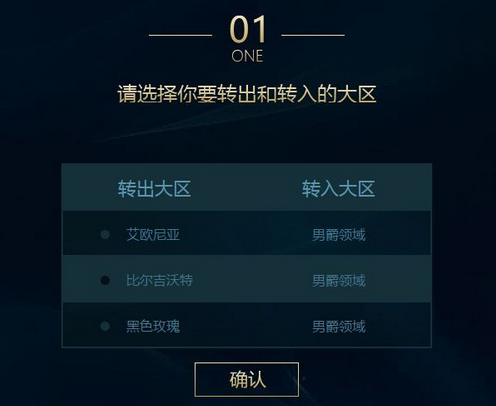 After selecting the transfer area and transfer area, click Confirm to complete the first step.