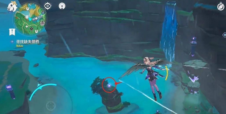 1. First of all, the purpose of this mission is to [allow us to see the complete Demon-Conquering Seal]. Part of the Demon-Conquering Seal is engraved on the two boulders in front of the entrance of Wangshu Inn. If you turn on [Elemental Vision] and look back, you will find a point with [yellow light].