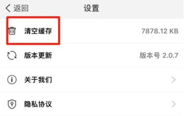 In the settings page, continue to search and click [Clear Cache] or a similar option. Different versions of the APP may have different layouts on the settings page, but "Clear Cache" is usually located at the bottom of the settings menu or under submenus such as "About" and "Storage".
