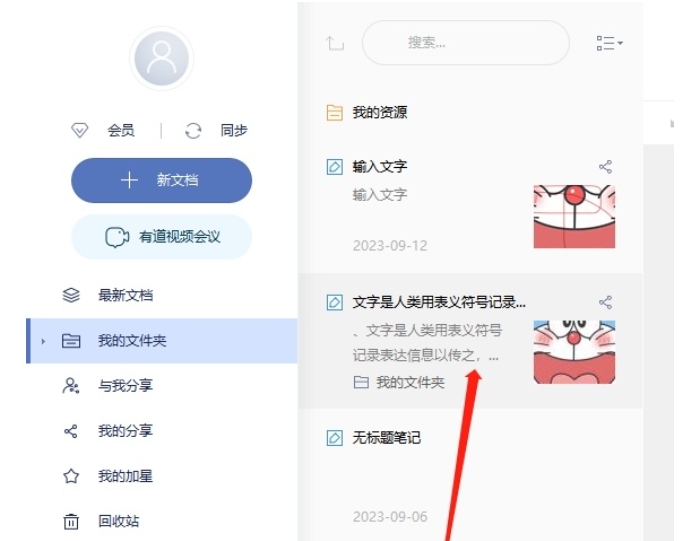 1. Open Youdao Cloud Notes and find the note you want to convert into a Word document in the note list.