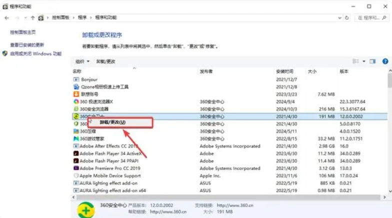 3. In the program list, find "360 Security Guard", right-click "360 Security Guard" and select the "Uninstall" option.