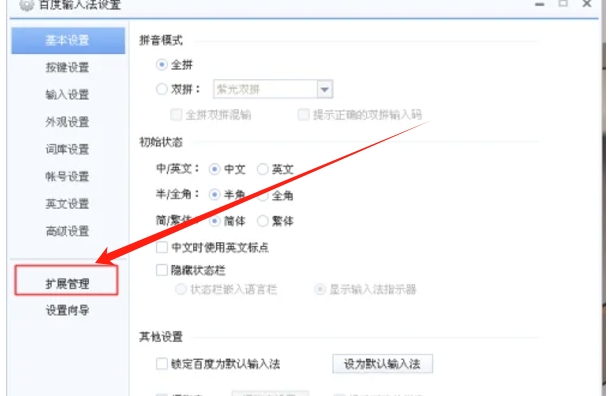 In the settings interface, find and click the "Extension Management" option on the left. All available input method extensions are listed here.