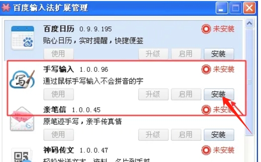 In the extension management page, find the "Handwriting Input" option and click the "Install" button. At this point, a progress bar will be displayed indicating the installation progress of the handwriting input plug-in. The installation progress bar may not be directly visible in other places (such as the settings interface of non-Baidu input method).