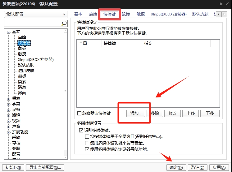 How to add keyboard shortcuts to potplayer?