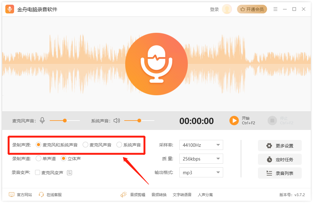 Step 1: After clicking to open "Jinzhou Computer Recording Software", first select the sound source to be recorded