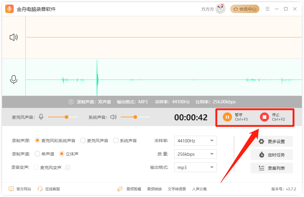 Step 4: After adjusting the appropriate volume, click the "Start" button to record the sound. You can pause or stop it at any time. After the recording is completed, you can view the recording file in the recording list.