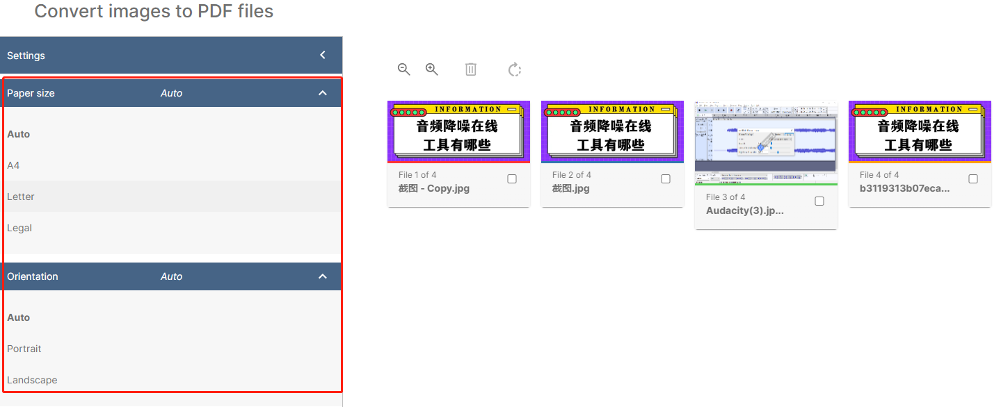 Step 2. Next, you can customize the image output parameters on the left side of the software interface, including adjusting the PDF page size and rotation direction.