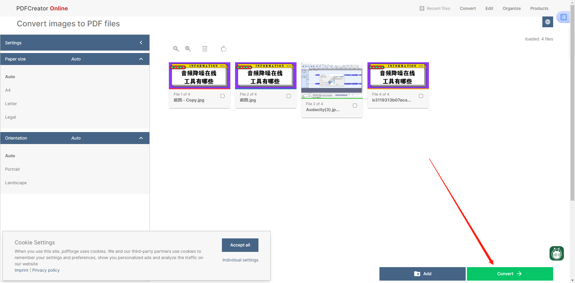 Method 2: Use "PDFCreator Online" to convert jpg to pdf
