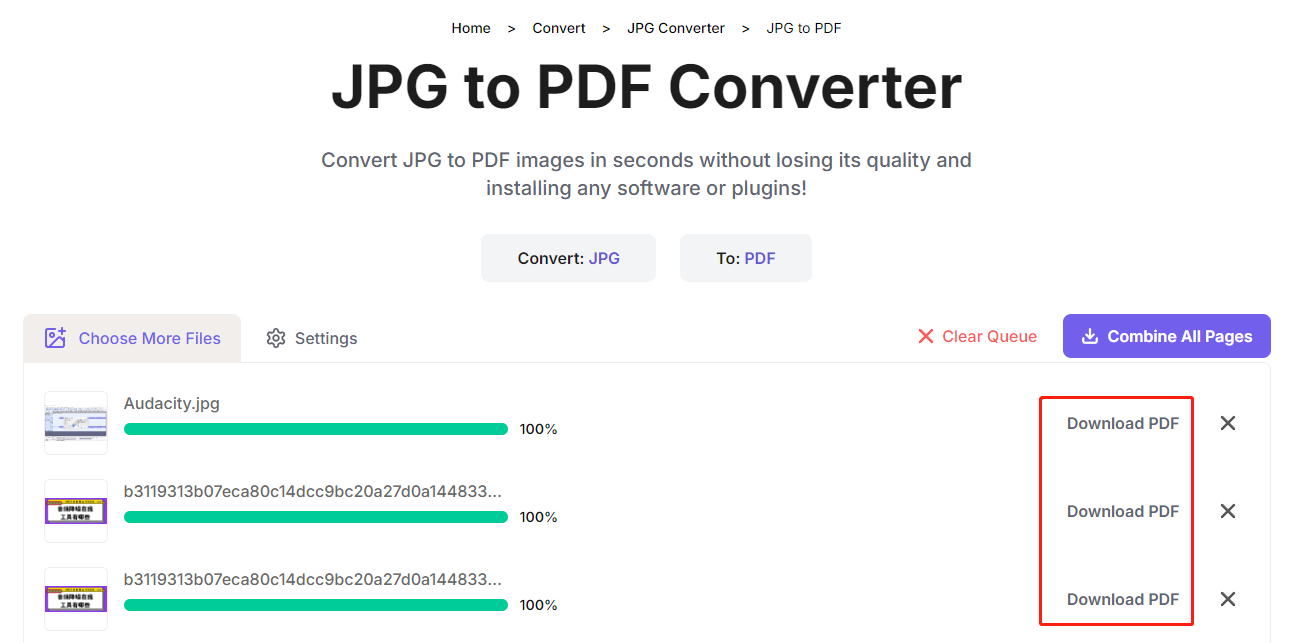 Step 3: After the photo conversion to PDF is completed, click [Download PDF] to download these successfully converted PDF documents to your computer.