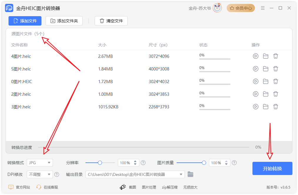 Operation: Users only need to upload HEIC images, set the output format to JPG, and specify the save location to start conversion.