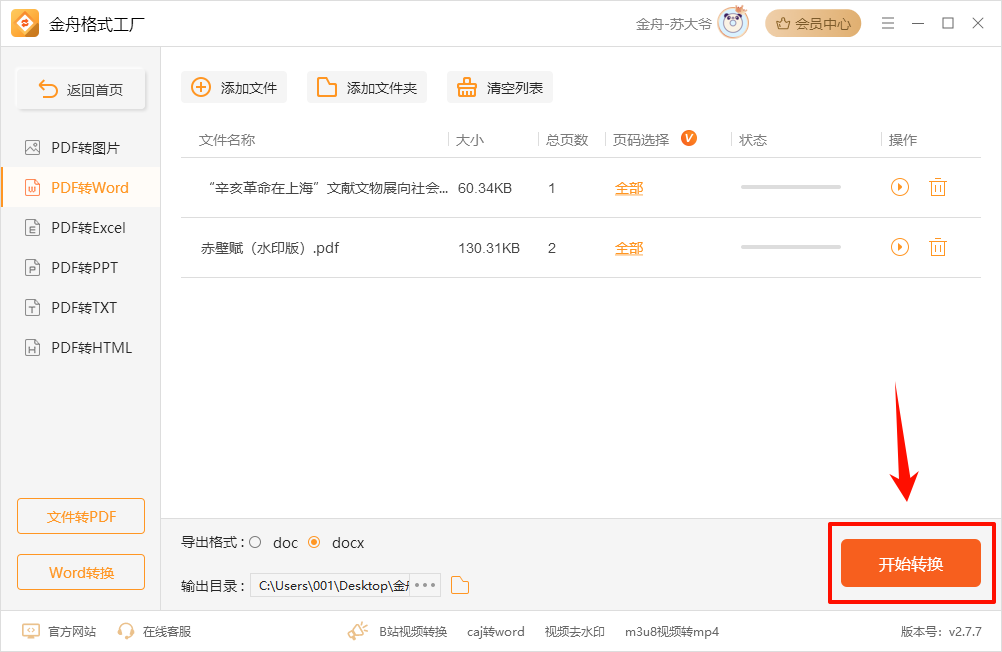 Step 3: After setting the conversion conditions, click the Start Conversion button, and the software will enter the process of converting PDF files to Word.