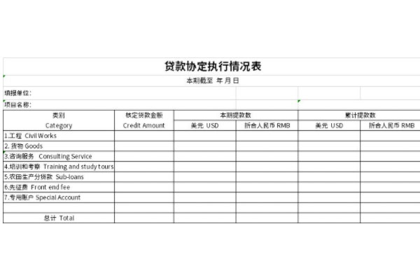 3rd floor Huajun netizen 2021-03-24 13:55:47General template for loan agreement implementation status table, very practical