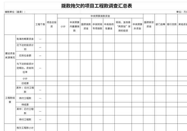 3rd floor Huajun netizen 2021-10-09 03:29:59General template for investigation and summary form of project payment arrears, very practical
