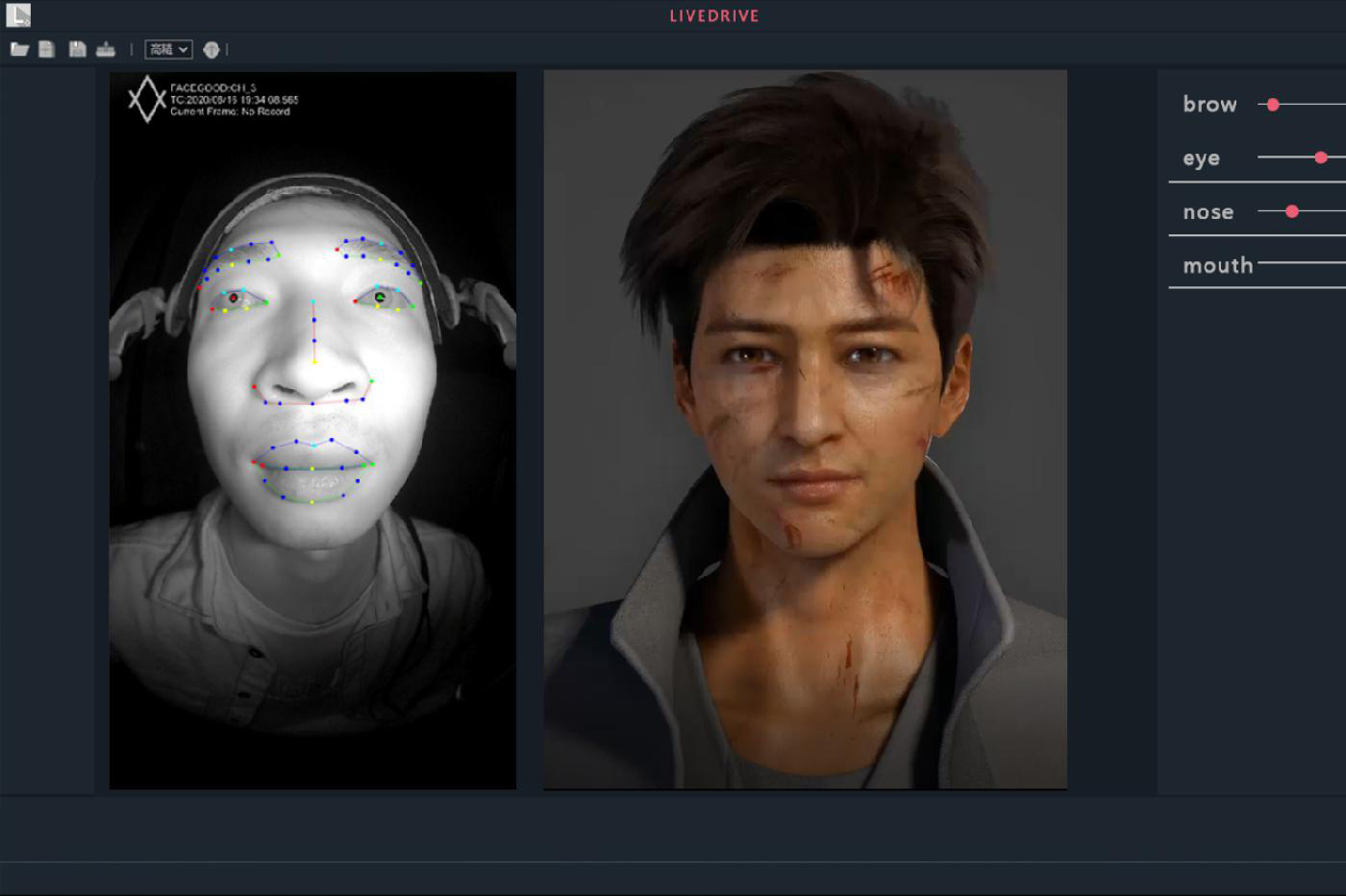 The offline process starts from high-definition video recording (Streamer), to facial expression tracking and analysis (Tracker), and then synchronizes the data to the model through Retargeter to drive the model to complete animation production. The process is highly automated, and the efficiency is more than 60 times higher than the traditional K-frame method - an actor can produce an animation in a few minutes in a few minutes. Subsequent optimization and adjustments only need to be made according to art needs. Real-time driver - LiveDrive is a real-time driver function developed for virtual live broadcast users and some corporate customers with higher real-time requirements. By linking to UE4 through simple settings, you can directly drive UE4 characters.