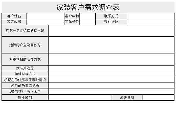 3rd floor Huajun netizen 2021-06-03 02:17:31Common template for home improvement customer demand survey form, very practical