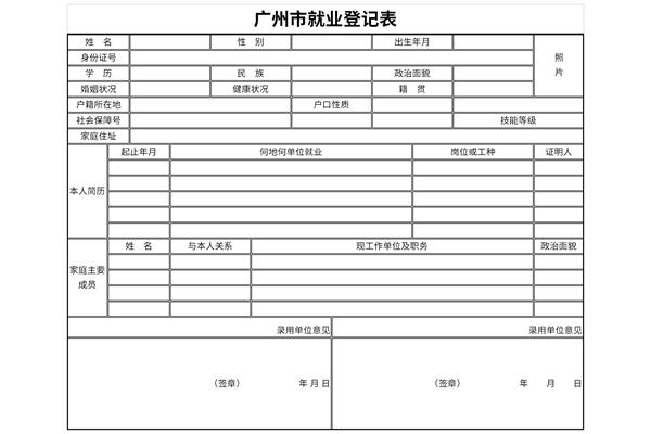 1st floor Huajun netizen 2021-08-22 17:17:05It’s not easy to find a free Guangzhou employment registration form template