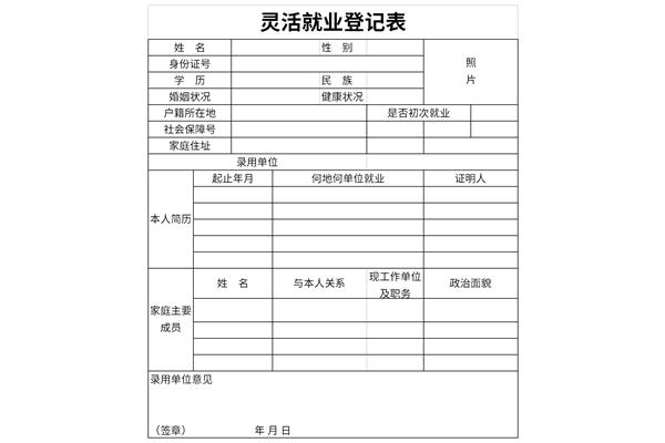 3rd floor Huajun netizen 2021-07-15 21:11:22Free download of flexible employment registration form, good experience
