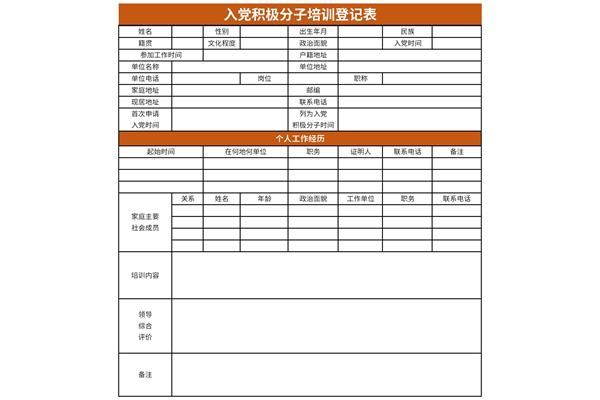 3rd floor Huajun netizen 2021-12-26 01:04:34Free download of training registration form for party activist, good experience