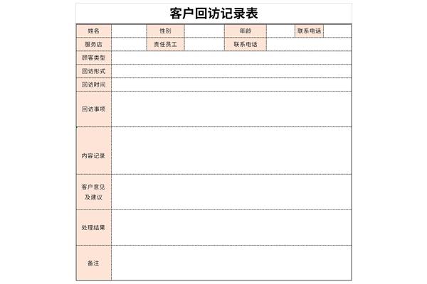 2nd floor Huajun netizen 2022-03-29 16:08:45The customer return visit record form template is universal, like it