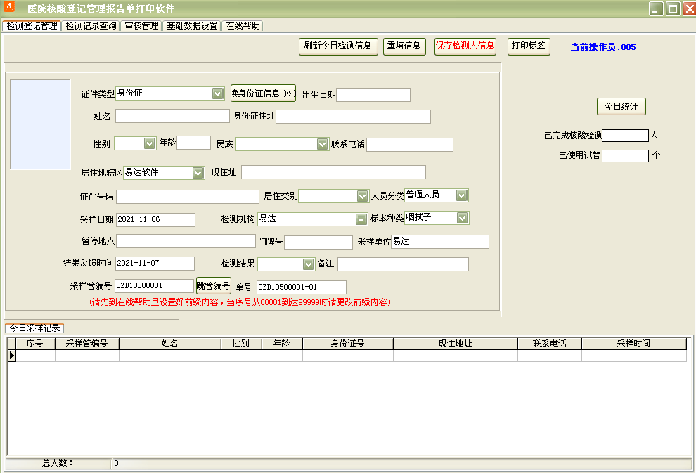Hospital nucleic acid registration management report printing software