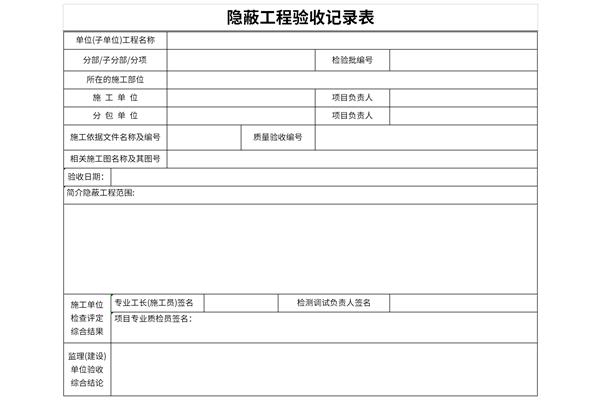 1st floor Huajun netizen 2021-10-16 01:37:08Free download of concealed project acceptance record form, good experience