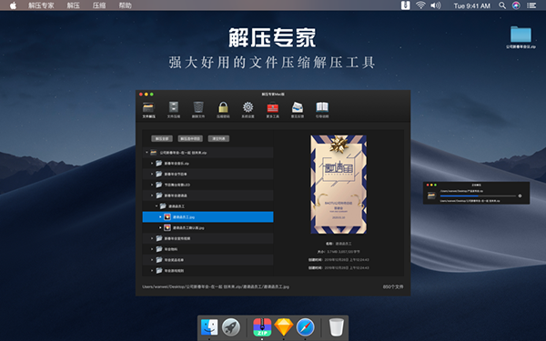 Decompression Expert MacThe latest version is suitable for use on the Mac platformCompression and decompression tools.Stress relief expertThe official Mac version integrates file browsing, transmission, compression and decompression, video playback, and photo browsing.Text editingand recording functions. And decompression expert Mac can also support 7Z,ZIP,RAR, TAR, GZIP, BZIP2, XZ, LZIP, ACE, ISO, CAB, PAX, JAR, AR, CPIO and other formats.