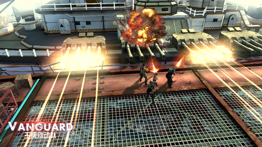 In the first stage, the battleship will use 4 cannons, 2 of which will take turns to attack in a straight line at a time. Pay attention to your positioning and use Lucy's shield and Rebecca's healing drone appropriately. First, focus your firepower to destroy 1 cannon to create a safe area. After destroying the two cannons, the battleship will fire stun bombs, so be careful about your positioning.
